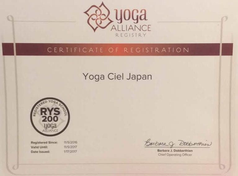YOGA CIEL JAPANは 全米ヨガアライアンス認定校RYS200として登録されております。